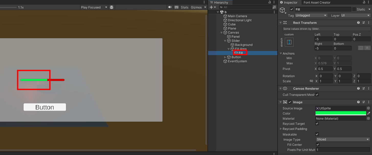 - Fill의 Left Right 부분을 조절하면 체력칸을 정확하게 표시 가능.