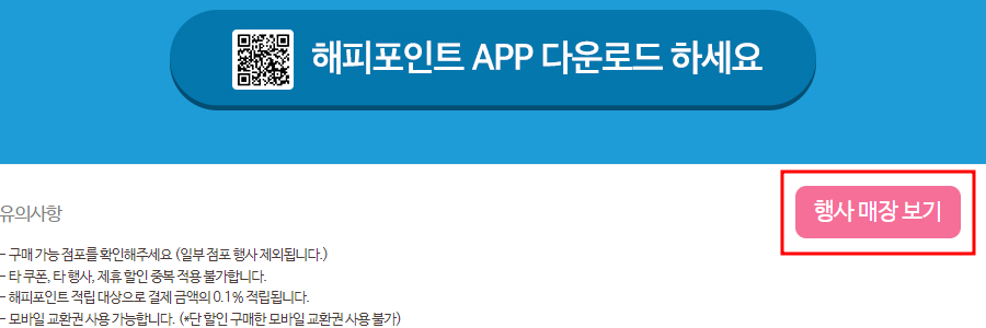 - 해피포인트 적립 대상으로 결제 금액의 0.1% 적립됩니다.