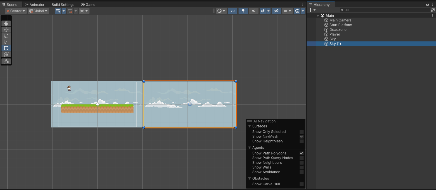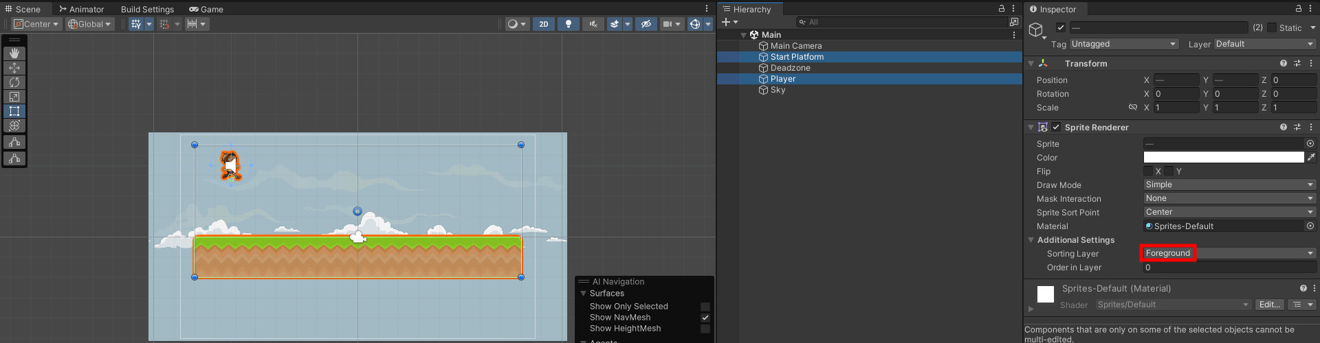 캐릭터와 발판은 Foreground로 설정 / 배경(sky)은 Background로 설정